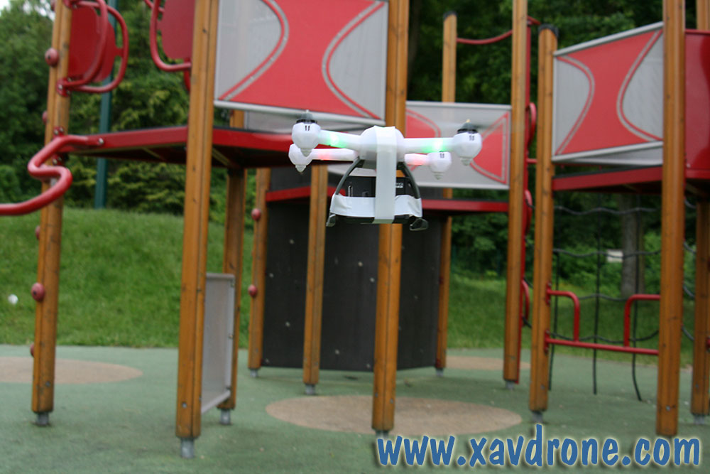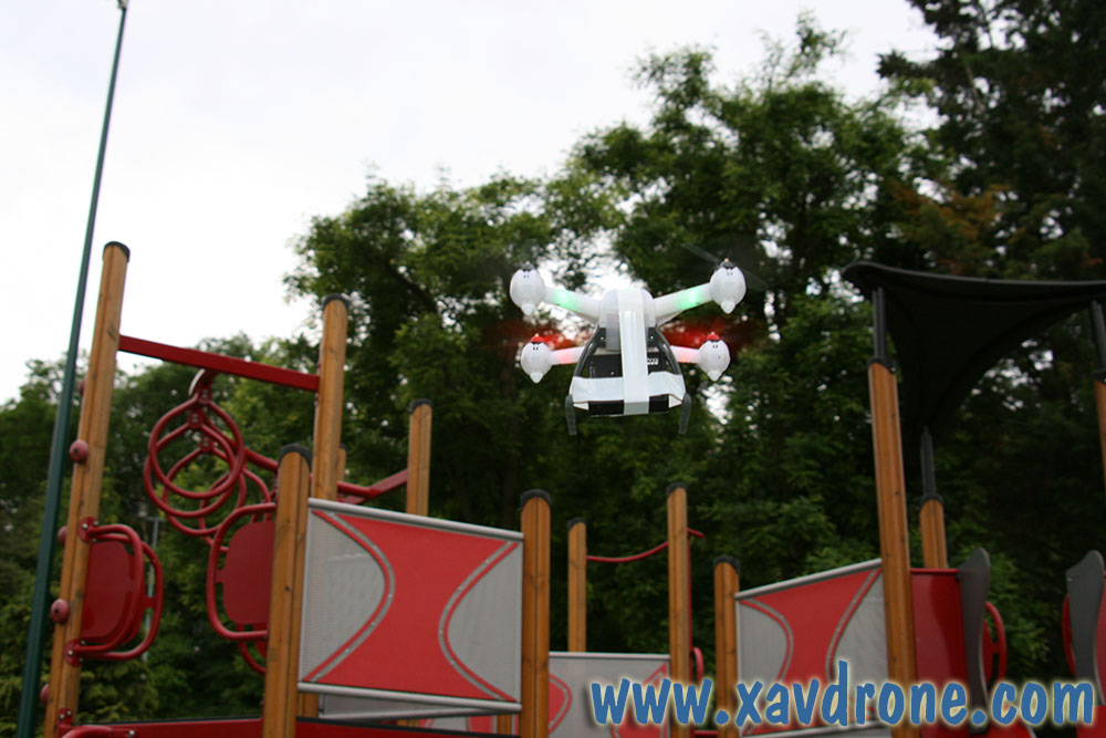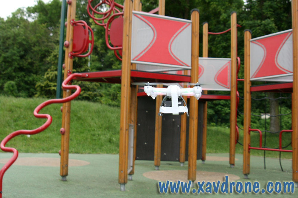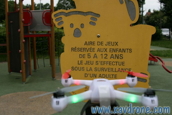 Promis je vous montrerai très prochainement comment mettre une caméra sous votre Blade 200 QX mais là je n’ais pas pu résister à tester mon nouveau drone sur une aire de jeux pour enfants histoire de faire un peu de slalom pour tester l’agilité du 200 QX.